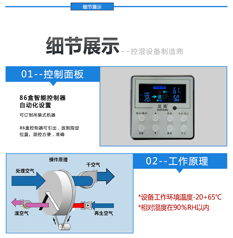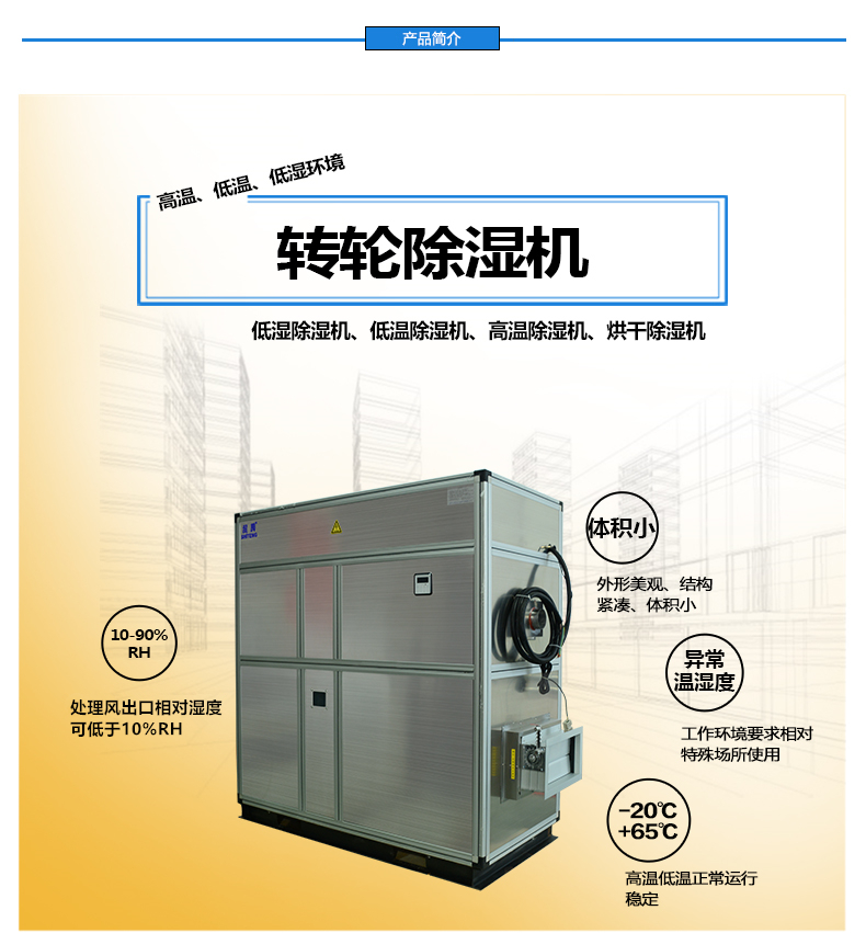 用戶環(huán)境溫度為35℃以上,相對濕度50%以上要求,則需要選配高溫型除濕機(jī),相對濕度45%以下,則需要考慮轉(zhuǎn)輪除濕機(jī);