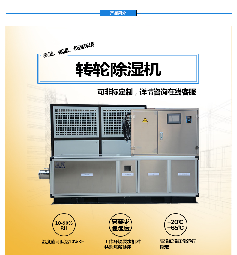 結合凈化車間溫濕度控制的特點及要求,描述并分析了現行醫藥行業凈化車間暖通設計的常規做法存在的問題,提出了優化改進的節能設計方案;并通過對實際工程在現行設計和優化設計兩種情況下的能耗及室內熱濕環境的詳細對比,再結合溫度、濕度的要求,濕騰研發、生產出恒溫恒濕凈化型組合式轉輪除濕機。