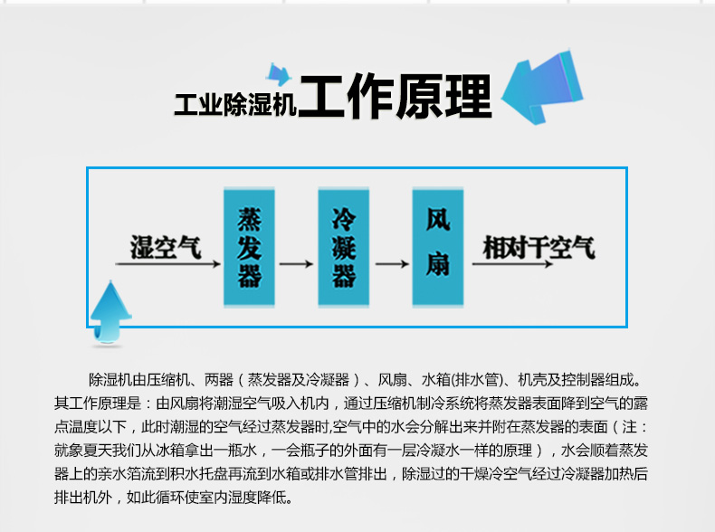 濕騰工業(yè)除濕機(jī)工作原理概述:
