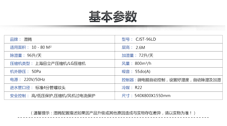 恒濕機-除濕加濕一體機CJST-96LD 出廠銘牌
