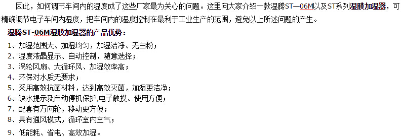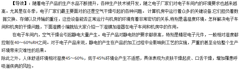如何解決電子車間、計算機房的環境干燥問題?